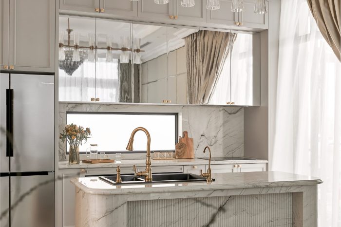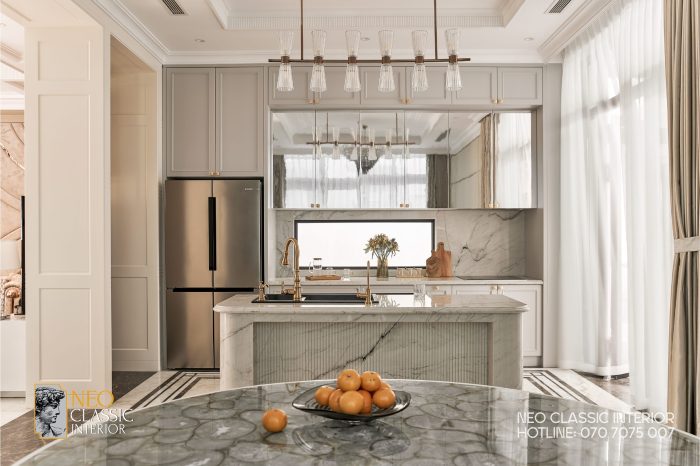Cũng như nhiều căn biệt thự hạng sang khác của NEO Classic, căn biệt thự này có bếp khô và bếp ướt tách biệt. Điều này đảm bảo không gian thẩm mỹ của gia đình, cũng như vệ sinh an toàn thực phẩm. Ngoài ra, việc chế biến thực phẩm động vật, hải sản, … sẽ không ám mùi và ố trong gian bếp trong nhà.