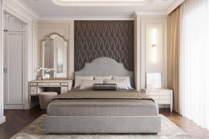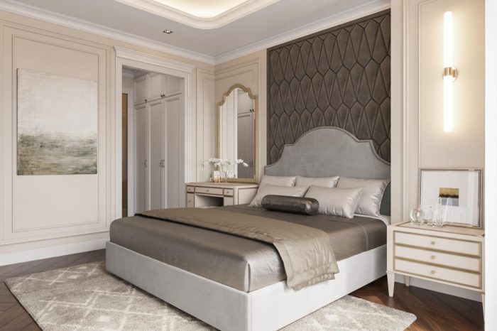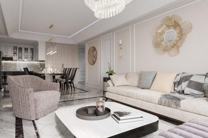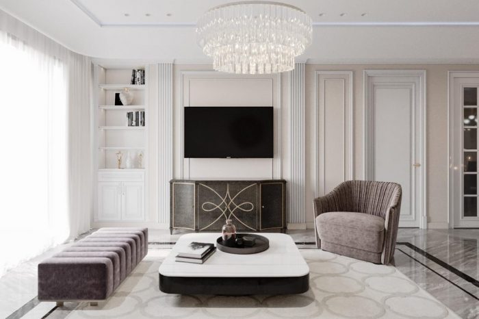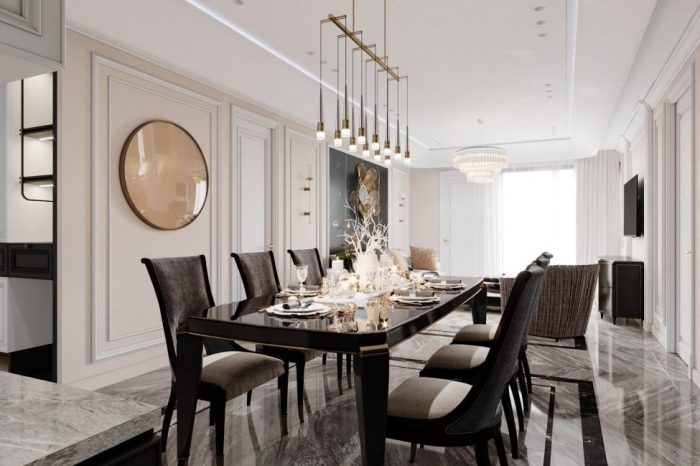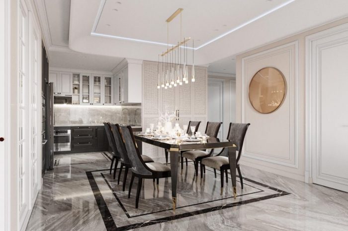 Một thiết kế đúng chất Tân cổ điển thể hiện ở các đường phào chỉ trần, tường mảnh dẻ và các đường cong trang trí nội thất mềm mại, nhẹ nhàng, màu sắc và chất liệu nội thất cao cấp thể hiện được sự sang trọng mà vẫn tinh tế.