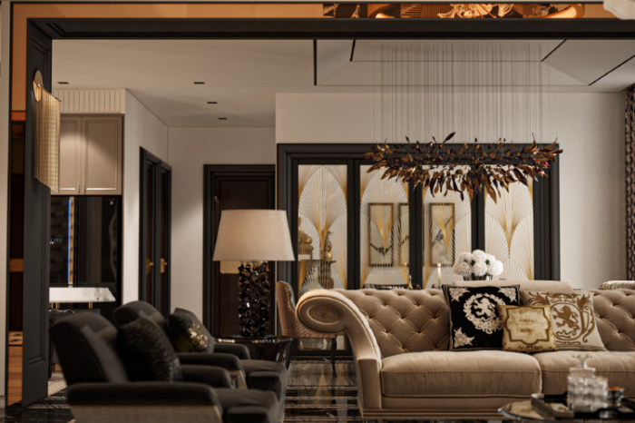 Nội thất căn hộ penthouse duplex thiết kế Tân cổ điển sang trọng