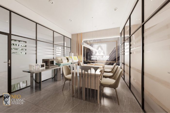 Với tổng diện tích sử dụng lên đến 1400m2 được ghép bởi 4 căn shophouse thông nhau, bài toán đặt ra cho NEO Classic khi thực hiện dự án này là tạo ra một không gian đa chức năng bao gồm: cửa hàng kinh doanh trang sức – kim cương, văn phòng và nhà ở.